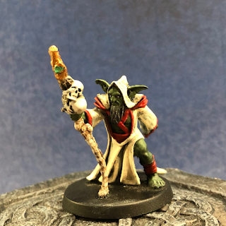 And then there was the mini my player had selected, the Goblin Wizard by UK based Atlantis Games. Simply a beautiful sculpt, and was only 2 pieces (Staff w/ arm and the reast of the model) and a base.